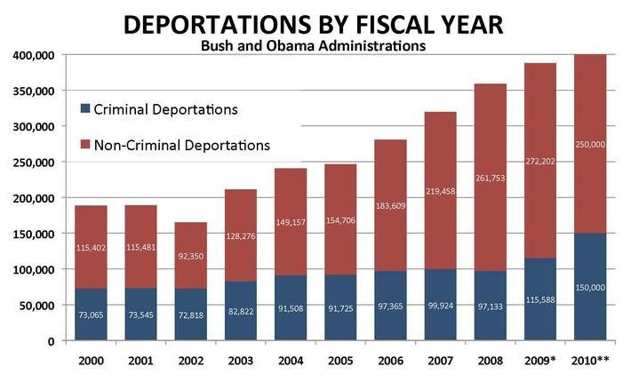 Deportations of illegal immigrants have been steadily rising under President Bush, and continue to rise under President Obama.